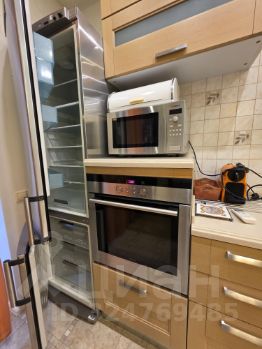 Кухня со всей необходимой мебелью и техникой - холодильник, варочная панель, вытяжка, микроволновая печь, посудомоечная машина, духовой шкаф, электрический чайник.