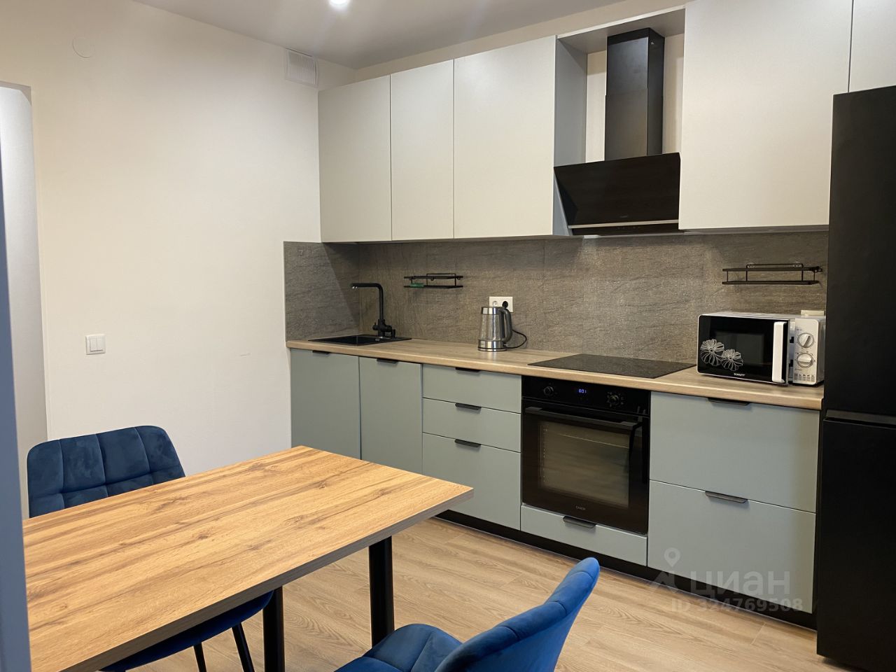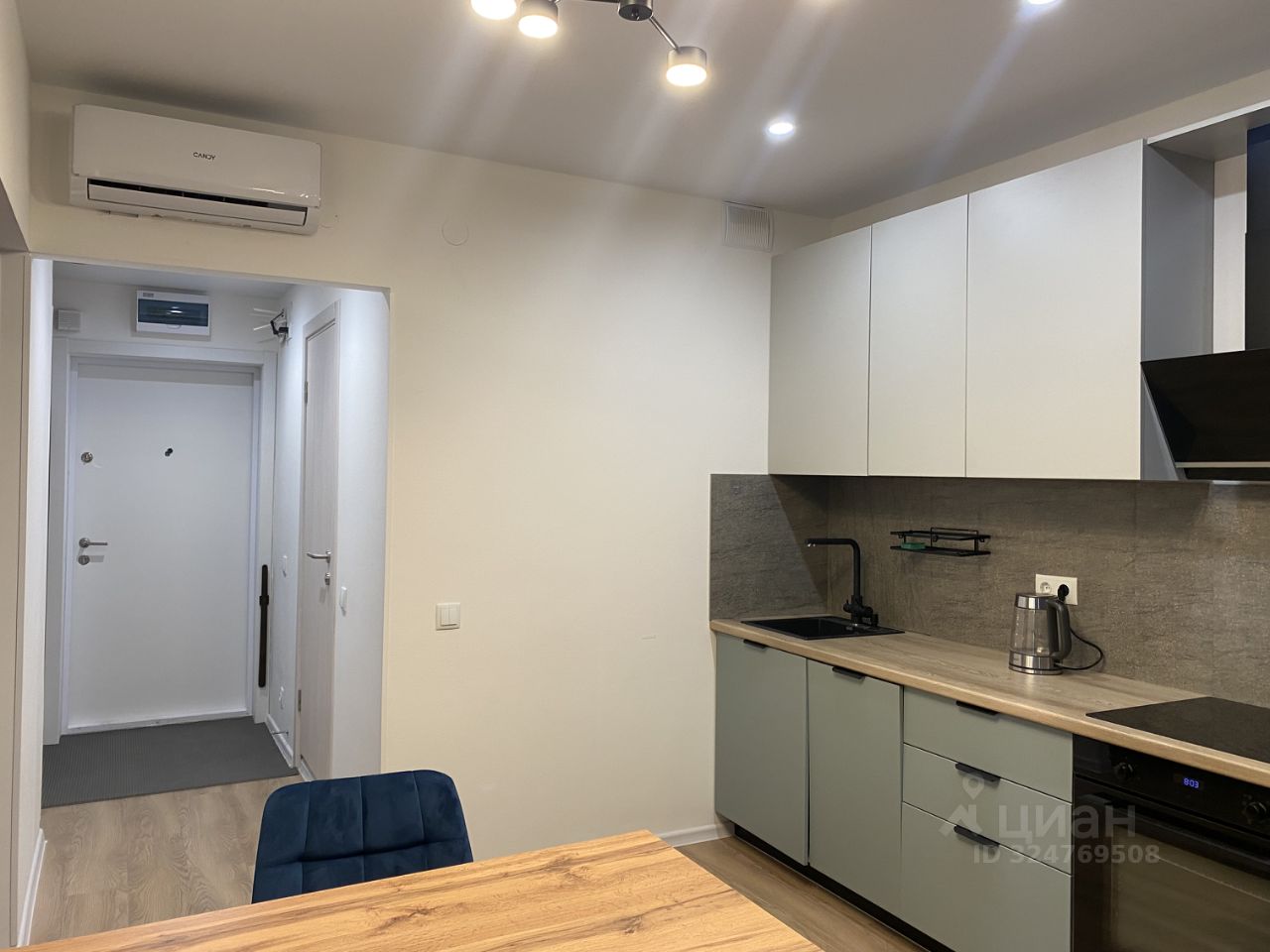 В квартире сделан дизайнерский ремонт, который привносит уют и стиль. Комната и кухня полностью оборудованы мебелью, поэтому можно сразу заезжать и жить. В квартире есть вся необходимая техника: кондиционер, холодильник, посудомоечная машина, телевизор и стиральная машина. Санузел совмещенный, в нем установлена ванна, что добавляет комфорта.