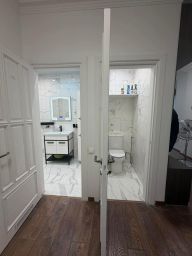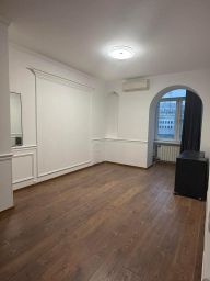Сдается в аренду просторная трехкомнатная квартира в самом сердце города, всего в двух минутах пешком от метро "Проспект Мира". Общая площадь квартиры составляет 90 кв. м, жилая площадь — 20 кв. м, а кухня впечатляет размерами — целых 30 кв. м. Квартира находится на 5-м этаже 8-этажного кирпичного дома, построенного в 1944 году. Потолки высотой 2.7 метра добавляют ощущения простора.