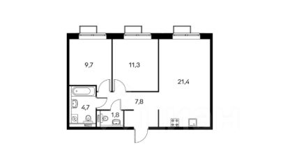 Сдаётся евротрешка с большой кухней-гостиной и двумя санузлами в ЖК Саларьево.