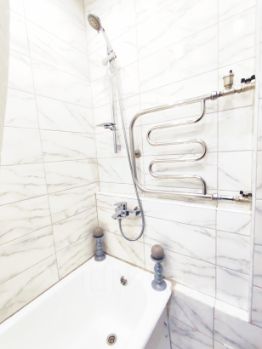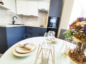 Кухня оснащена всей необходимой техникой (встроенный духовой шкаф, варочная газовая панель, вытяжка, микроволновая печь, посудомоечная машинка, холодильник, стиральная машинка). Ванна и санузел раздельные. Просторный коридор со встроенными шкафами для хранения верхней и повседневной одежды.