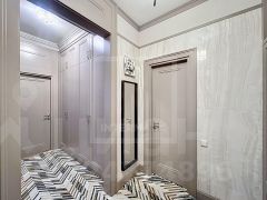 В квартире: С мебелью, Посудомоечная машина, Стиральная машина, Душевая кабина, Кондиционер, Видеонаблюдение, Интернет, Европланировка, Интерьер в современном стиле, Консьерж, Гардеробная комната, Ремонт - дизайнерский, Кухонная мебель, Окна на улицу, Окна во двор
