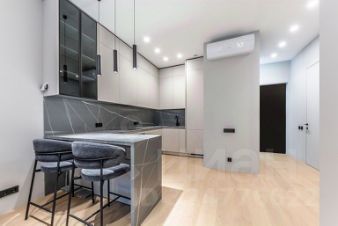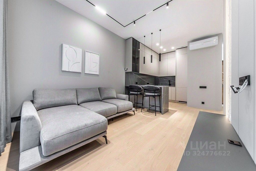 Планировка: кухня-гостиная, спальня с гардеробной, санузел, прихожая.