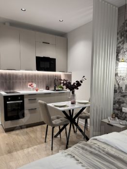 Площадь помещения 25 кв.м., Квартира полностью мебелирована для комфортного проживания. Большой 2 м. шкаф для хранения вещей. (стиральная машинка, варочная панель, духовой шкаф, встроенный холодильник+ доп шкаф для хранения вещей рядом, вытяжка, микроволновая печь, посудомоечная машинка, телевизор, кондиционер, электрический полотенцесушитель, домофон). Сделан качественный ремонт. Проведён высокоскоростной интернет. Квартира очень тёплая, регулируемое отопление. Ранее никто не проживал!
