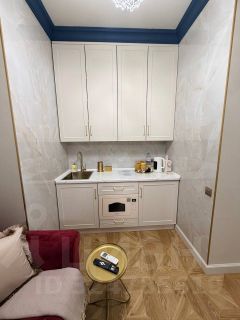 - вся необходимая бытовая техника: варочная панель, микроволновая печь, холодильник, капсульная кофеварка, электрический чайник, кондиционер