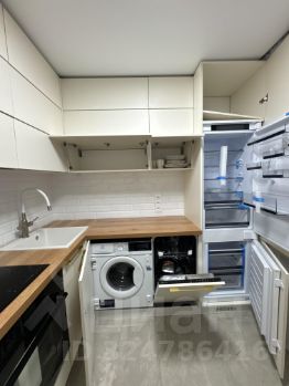 Кухня. На кухне плита, духовка, встроенный холодильник, посудомоечная машина, стиральная машина и вытяжка которой позавидуют даже самые искушенные повара.