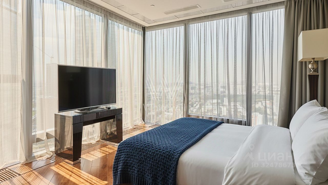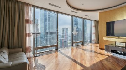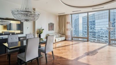Видовой просторный апартамент площадью 139 м² в комплексе небоскрёбов премиум-класса "Федерация" в башне "Запад". Панорамное остекление и в сочетании с высотой на 56 этажа позволяют наслаждаться видами на Москву, башни "Москва-Сити" и потрясающими закатами. Дизайнерский интерьер оформлен в стиле современной классики, в отделке использована венецианская штукатурка, натуральный американский орех.