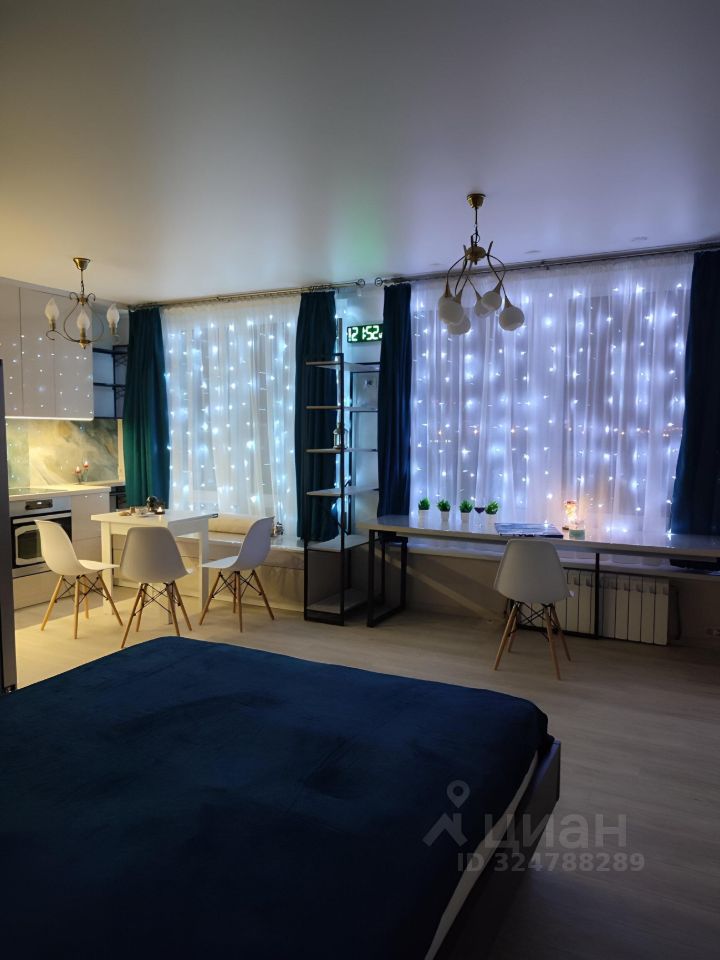 Квартира выполнена в формате студии с 2 раздельными сан.узлами и большой гардеробной, снабжена всей необходимой мебелью и техникой (2ух камерный холодильник, индукционная плита на 4 комфорки, духовка, посудомоечная и стиральные машины, накопительный водонагреватель, электрич. полотенцесушитель, кондиционер, чайник). Окна с видом во двор, для возможности работы с ПК и занятия творчеством с дневным светом перед окном установлен стол 260 см из кухонной столешницы, для чае/кофепития с видом в окно установлена банкетка 240 см из кухонной столешницы.