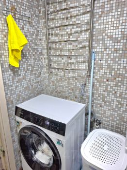 В квартире новая стиральная машина: загрузка до 14 кг, инверторный двигатель, отжим 1400 оборотов.