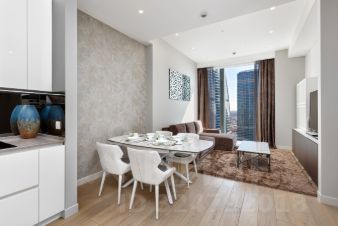 Находится на 38 этаже башни Neva. Из панорамной гостиной открывается великолепный вид на город.