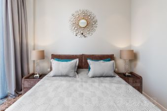 Планировка включает кухню-студию, совмещенную с гостиной, спальню с отдельной ванной, постирочную и сушильную зоны, обширный холл. Есть гостевой санузел. Квартира полностью укомплектована мебелью, бытовой и кухонной техникой.Оборудован современной итальянской мебелью, всей необходимой техникой и электроникой.