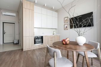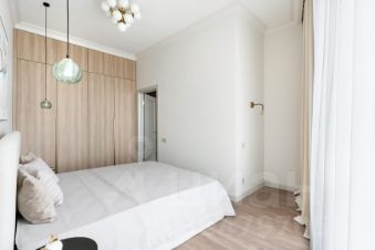 Апартаменты состоят из кухни -студии, спальни, гардеробной и ванной комнаты. Вся мебель и техника новые. Теплый пол - коридор и ванная комната.
