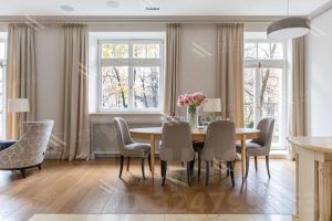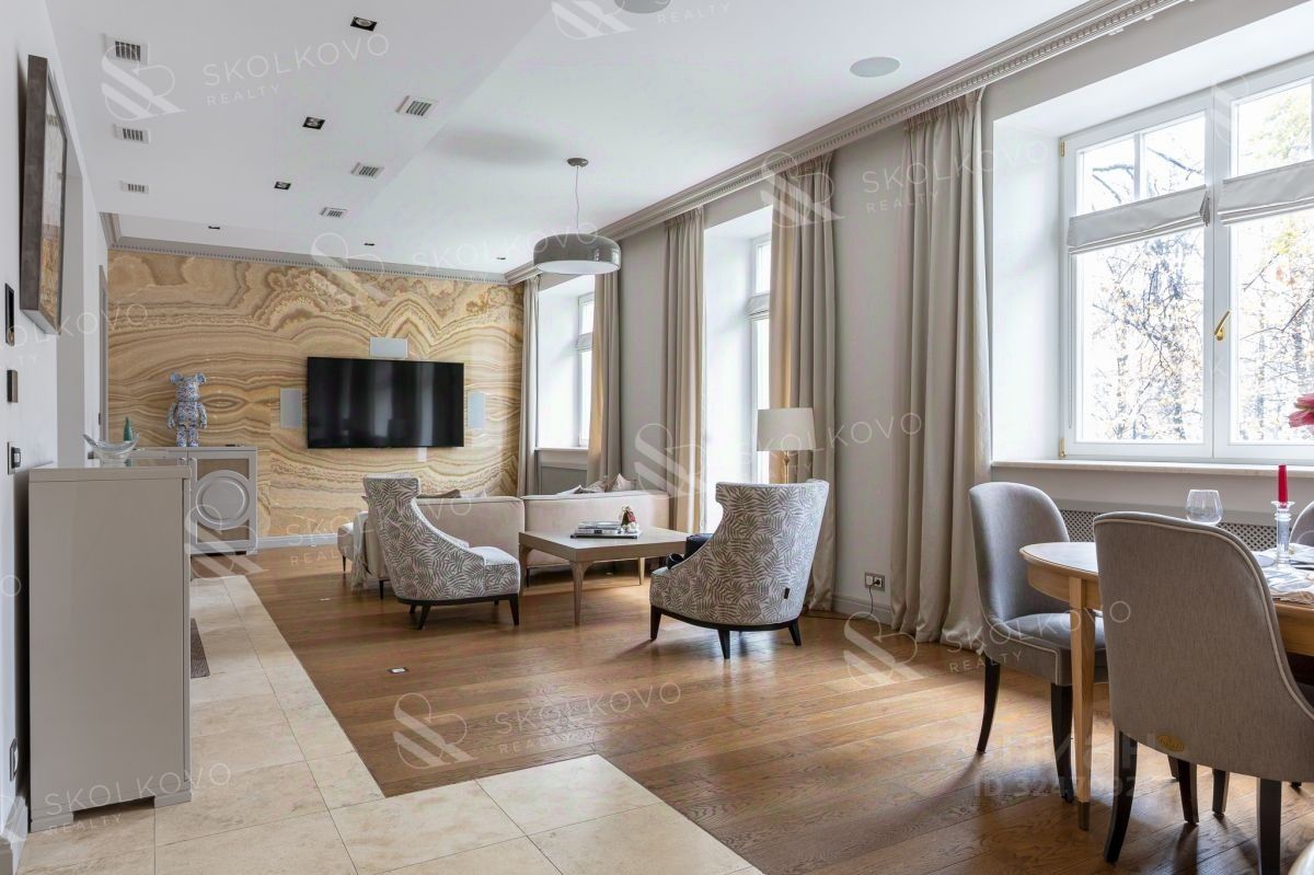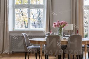 Высота потолков 3,2 метра добавляет атмосферу легкости и свободы, а балкон в гостиной открывает захватывающий вид на живописный Патриарший пруд.