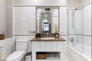 Изолированную спальню, кабинет для работы и второй санузел, расположенный рядом с спальнями и кабинетом для максимального удобства.