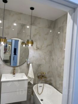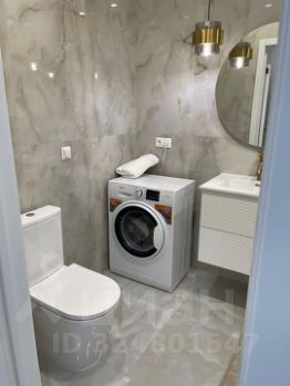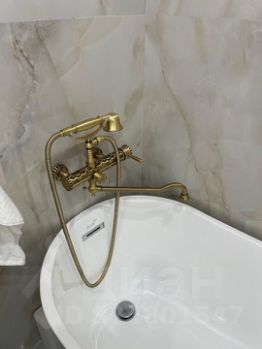 Ванная комната- стиральная машинка, современная ванна с модными смесителями.