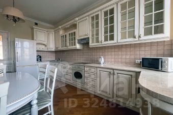 В просторной кухне площадью 20 кв. м есть вся необходимая мебель и техника: холодильник, посудомоечная машина, кондиционер, стиральная машина и телевизор. В квартире два совмещенных санузла, в одном из которых установлены ванна и душевая кабина. Окна выходят во двор, что обеспечивает тишину и уединение.