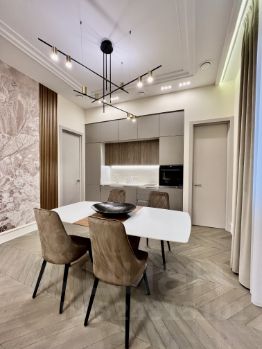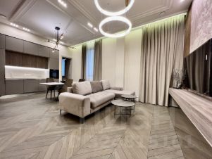 Общая площадь 100 кв.м. Высота потолков 3.8 метров. В помещении выполнен дизайнерский ремонт под ключ с использованием дорогих и качественных материалов.