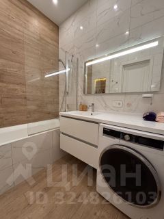 *санузел совмещенный с интегрированной раковиной из камня, ванна,стиральная машина;