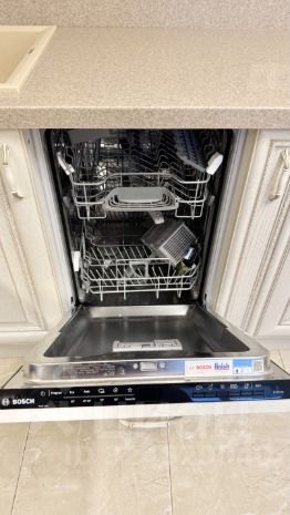 Кухня просторная, площадью 10 м², оснащена современной техникой: холодильником, плитой, микроволновой печью и посудомоечной машиной.