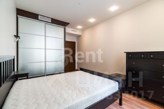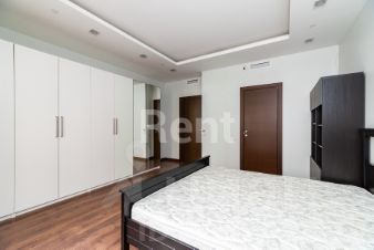 БЕЗ КОМИССИИ ДЛЯ АРЕНДАТОРА. Предлагается просторная квартира с террасой в комплексе "Триумф Палас". Планировкой предусмотрены гостиная, объединенная с большой кухней, а также три изолированные комнаты. Кухня располагает полным набором бытовой техники, включая посудомоечную машину и духовой шкаф. Оборудованы две ванные комнаты. Установлены системы кондиционирования и тёплых полов.