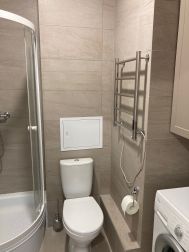 Совмещенный с/у с душевой кабиной и со стиральной машинкой.