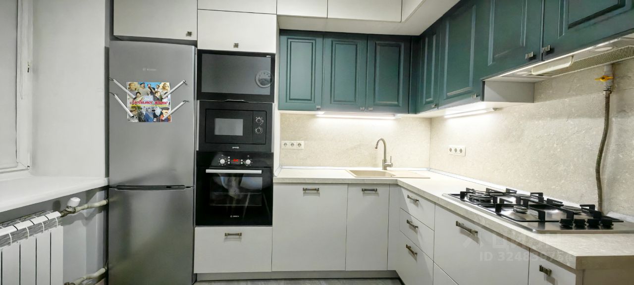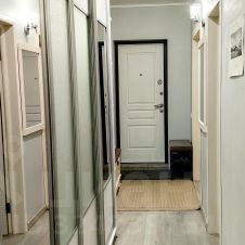 Изолированные три комнаты со спальными местами и системой хранения, кухня полностью оборудованна всей необходимой встроенной техникой, большой коридор и совмещенный санузел с душевой кабиной и бойлером, одна застекленная лоджия и один большой открытый балкон.