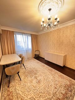 В квартире сделан качественный евроремонт. Все комнаты полностью меблированы, включая кухню. Установлены вся необходимая техника: кондиционер, холодильник, стиральная машина. Высота потолков — 2.7 метра. Окна выходят на улицу и во двор.