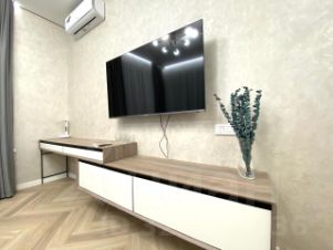 Выполнен высококачественный дизайнерский ремонт, много мест для хранения вещей.