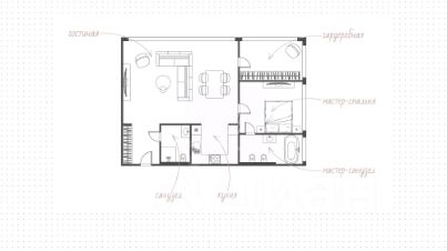 Планировка включает кухню-гостиную с мягким угловым диваном, мастер-спальню с персональной ванной комнатой, вторую комнату, которую можно использовать под гардеробную или кабинет, холл и гостевой санузел с душевой. В квартире с потолками 3,2 метра установлена мебель, встроенная бытовая техника, приточно-вытяжная система вентиляции и кондиционеры. Благодаря панорамным окнам помещение наполнено светом. Машиноместо в подземном паркинге включено в стоимость аренды.