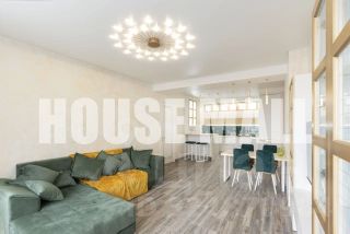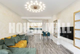 Квартира оформлена с использованием дизайнерских решений, что создает атмосферу уюта и комфорта. В комнатах есть мебель, кухня оборудована всей необходимой техникой: кондиционером, холодильником, телевизором, посудомоечной и стиральной машинами. Планировка включает два отдельных санузла с ванной и душевой кабиной, обеспечивая максимальное удобство.