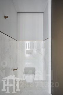 Отделка стен и пола в санузлах выполнена из натурального камня. Полы в санузлах теплые.