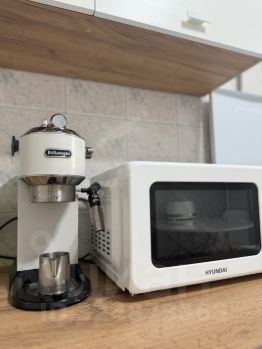 В квартире сделан евроремонт: стены и полы оформлены в светлых тонах, что создаёт атмосферу уюта и комфорта. На кухне есть вся необходимая мебель и техника: холодильник, телевизор и стиральная машина, тостер, кофемашина. Вся мебель и техника новые.