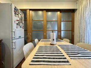 В квартире есть всё необходимое для комфортного проживания: 2 кондиционера, холодильник, посудомоечная и стиральная машины, телевизор. Все комнаты меблированы. Санузел совмещённый, с ванной. На лоджии есть встроенный шкаф.