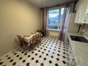 ЖК Скандинавия - Просторная квартира с видом на лес. Квартира обставлена новой мебелью и техникой. В большой спальне двуспальная кровать огромный шкаф-купе , во второй комнате двухспальный диван , письменный стол комод и телевизор, третья комната оборудована как кабинет или детская - в ней письменный стол, книжный шкаф, комод и маленький диванчик. При необходимости можем добавить ещё один большой телевизор, также обсуждается добавление посудомоечной машины и кондиционера. Удобная планировка, просторная кухня 15 метров, 2 сан-узла, комнаты изолированные. огромный застекленный балкон. На кухне и в санузлах плитка на полу, в комнатах ламинат. Соседи уже сделали ремонт, поэтому шума вокруг не будет. Очень удобное расположение. В шаговой доступности метро и ходят маршрутки. Около дома есть бесплатная парковка. Дом расположен в новом районе, в пешей доступности находятся: частная школа, аптеки, продуктовые супермаркеты и гипермаркет Глобус. Рядом расположен лесной массив.