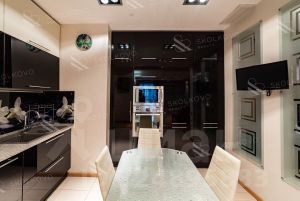 На кухне установлен современный кухонный гарнитур с встроенной техникой от немецкой компании MIELE. Для комфортного проживания предусмотрены полы с подогревом, скоростной интернет и спутниковое телевидение.