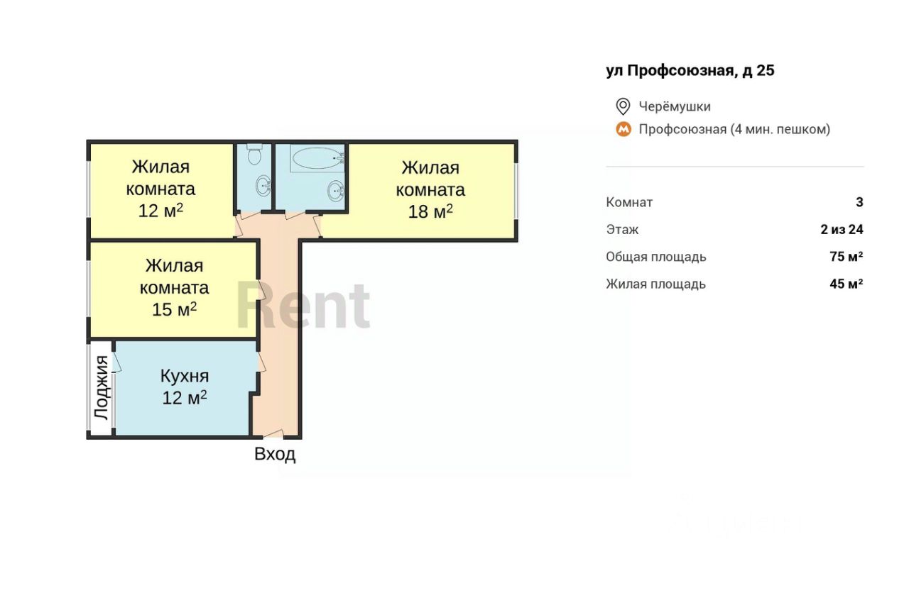 Предлагается практичная трехкомнатная квартира рядом с метро "Новые Черемушки" и "Профсоюзная". Комнаты полностью меблированы: здесь есть диваны и кровати, шкафы для гардероба, удобное рабочее место. Светлая кухня с выходом на застекленную лоджию располагает необходимой техникой для готовки, включая посудомоечную машину и духовую печь.