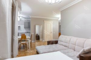 Квартира расположена всего в пяти минутах пешком от станции метро "Арбат", что обеспечит вам удобный доступ ко всем уголкам столицы.