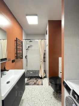 Квартира с дизайнерским ремонтом, поэтому жить здесь будет особенно приятно. В комнате есть вся необходимая мебель, а также современная техника: кондиционер, холодильник, посудомоечная машина, телевизор и стиральная, сушильная машина. Высокие потолки (2.95 метра) создают ощущение простора, а окна, выходящие на улицу, наполняют помещение естественным светом. В ванной комнате установлена душевая кабина.