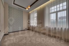 Стильная 5-комнатная квартира. 3/5 этаж. Высота потоков - 3.8 м. Количество спален: 4. Количество санузлов: 3. Общая площадь: 250 кв. м. Площадь кухни: 20 кв. м. Площадь комнат: 18-19-22-19. Окна во двор и на улицу