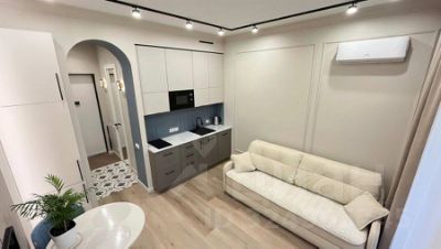 Бытовая техника: телевизор, встроенный холодильник с морозильной камерой, вытяжка, варочная панель, посудомоечная машина, электрический чайник, микроволновая печь, стиральная машина, кондиционер, пылесос, электрическая потолочная сушилка для белья (с функциями UV- дезинфекции и обдува тёплым воздухом), проточный водонагреватель, система защиты от протечки воды и отопления "Нептун".