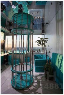 Пилон, клетка и качели для создания игривой атмосферы.
