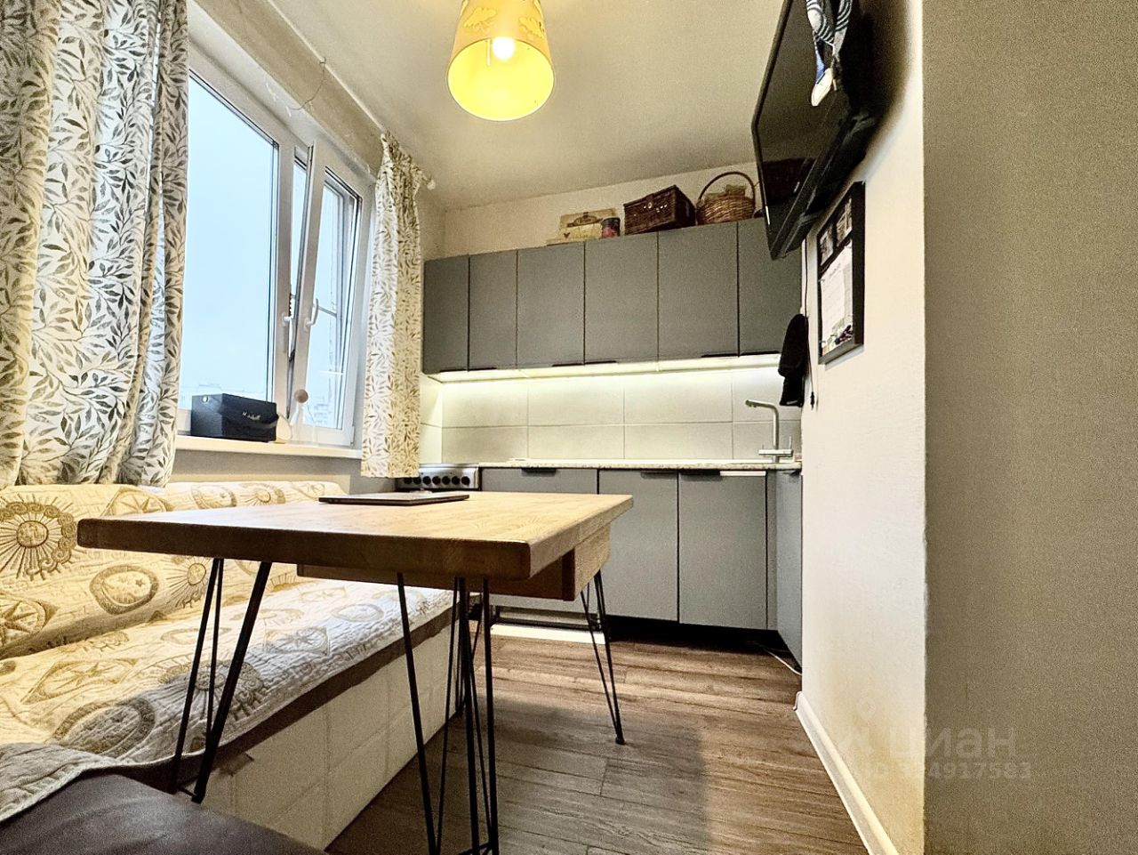 В квартире выполнен современный евроремонт, установлена необходимая мебель как в комнате, так и на кухне.