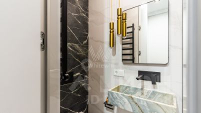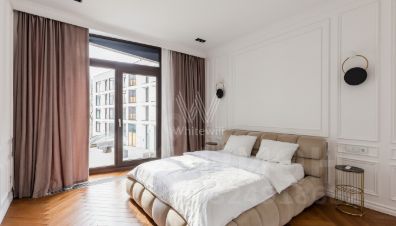 Апартаменты с 2 спальнями в комплексе резиденций премиум-класса Balchug Residence на острове Балчуг. Апартаменты общей площадью 109 м² расположены на 2 этаже. Выполнена дизайнерская отделка с использованием натуральных материалов. Интерьер оформлен в неоклассическом стиле в светлых тонах. Панорамные окна и потолки высотой 3 метра наполняют пространство естественным светом и воздухом.