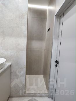 В ванной комнате полы идут с обогревом,а душевая кабина зонированная перегородкой из пеноблоков,что является намного практичнее и комфортнее стеклянных перегородок.