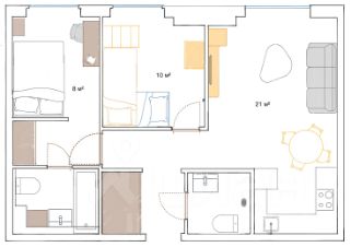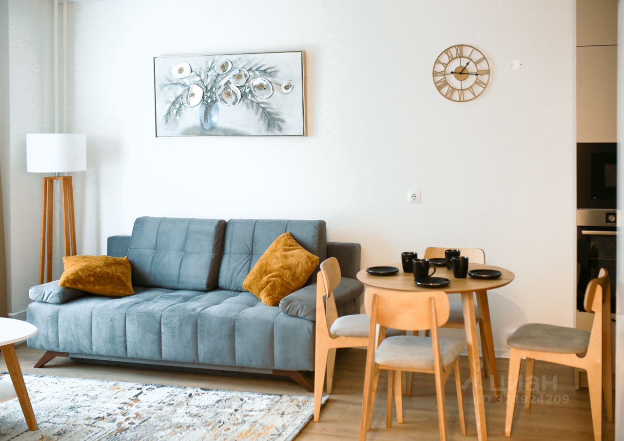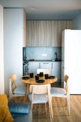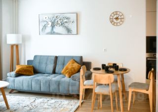 Большая кухня с отдельной обеденной зоной (20.5 кв.м). ТВ зона с раскладным диваном на 2 спальных места для гостей и телевизором с диагональю 55. Обеденный стол раскладывается.