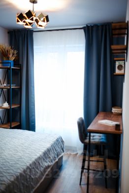 В спальне кровать с подъемным механизмом, ортопедическим матрасом 160х200 см и рабочим местом возле окна.