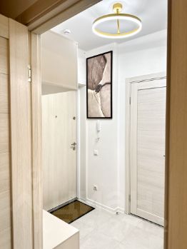 Эта новая дизайнерская 1-комнатная квартира — для тех, кто выбирает жизнь без компромиссов. Для человека, которому важны время, комфорт и ощущение качества в каждом дне. Квартира находится рядом с современным кварталом Символ и открывает вид на его архитектуру прямо с 19 этажа. Здесь никто не жил — пространство создано для себя: дорогие материалы, продуманное хранение, встроенная техника, стиральная машина с сушкой, два телевизора, оптоволоконный интернет. Спальная зона аккуратно интегрирована в нишу, сохраняя личное пространство даже в однокомнатной планировке. Мягкий свет, спокойные оттенки, тихая атмосфера — место, куда приятно возвращаться после насыщенного дня.