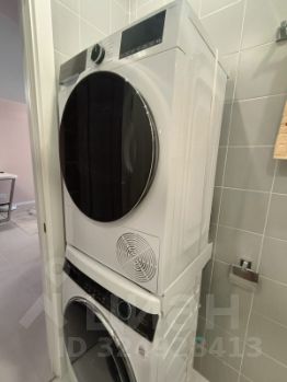 Квартира полностью меблирована: в комнате и на кухне есть вся необходимая мебель. Современная техника включает в себя кондиционер, холодильник, посудомоечную машину, телевизор и стиральную машину и сушильную машину. Ванная комната оборудована ванной, что делает её особенно комфортной для проживания.