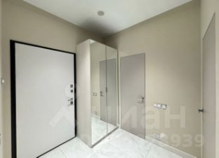 Двуспальная кровать Аскона, прикроватная тумба, журнальный столик, шкаф купе с зеркальными дверьми, шкаф в прихожей с зеркальными дверьми, в кухне-гостиной: раскладной диван, обеденный стол и 4 стула