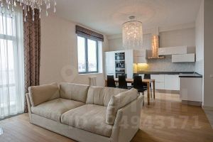 Сдается видовая квартира с ремонтом и мебелью в современном стиле площадью 125,6 кв.м. в жилом комплексе Дом на Покровском бульваре. Удачная планировка пространства: холл со встроенными шкафами, кухня-столовая-гостиная с выходом на балкон, 2 спальни, 2 ванные комнаты, кабинет/гардеробная комната.